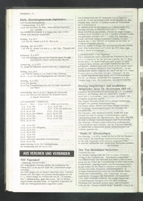 Anläßlich der Jahreshauptversammlung des S. V. Horressen 1919 e. V. am Freitag, dem 3o. März 1973, wurden durch den 1. Vorsitzenden, Herrn Gisbert Quirnbach, verschiedene Mitglieder geehrt.