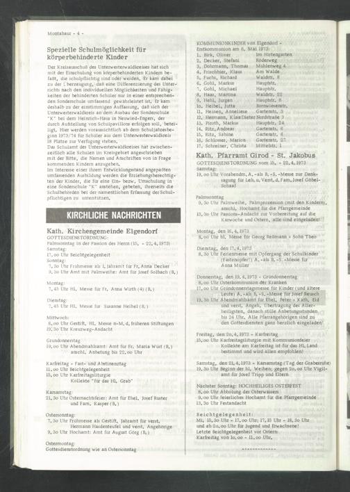 8. oo Uhr hl. Messe für Georg Reßmann + Sohn Theo Dienstag, den 17.4.1973
