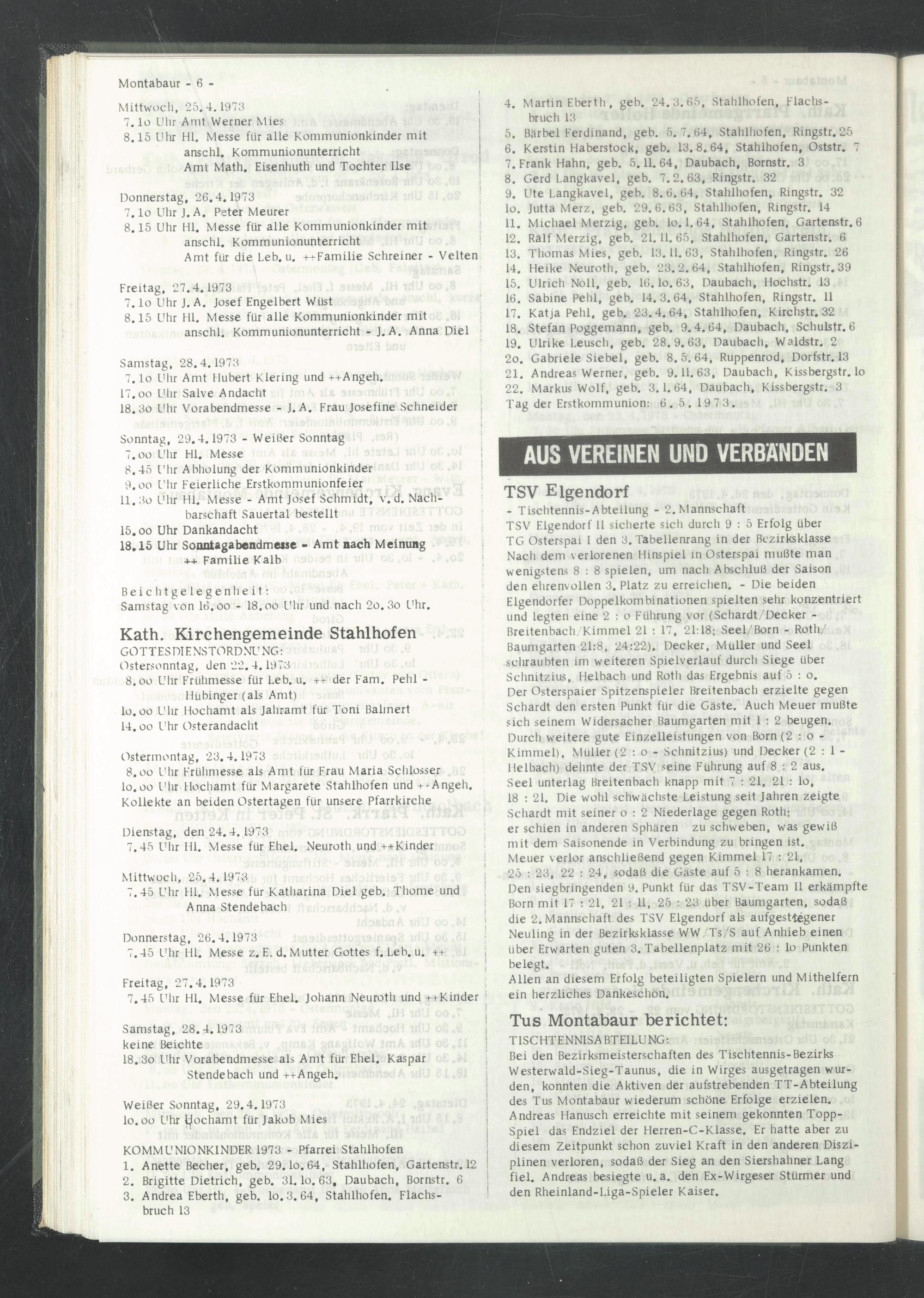 Sonntag, 29.4.1973 - Weißer Sonntag 7.oo Uhr Hl. Messe