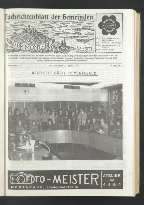 Für die Stadt Montabaur und die Gemeinden Bladernheim, Boden, Daubach, Eigendorf, Eschelbach, Ettersdorf, Gackenbach ( mit Dies und Kirchähr) Großholbach, Heiligenroth, Hübingen, Holler, Horbach, Horressen, Niederelbert, Oberelbert, Reckenthal, Ruppach-Gold- •