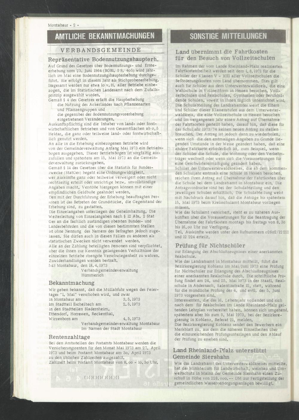 543 Montabaur, den 18.4.1973