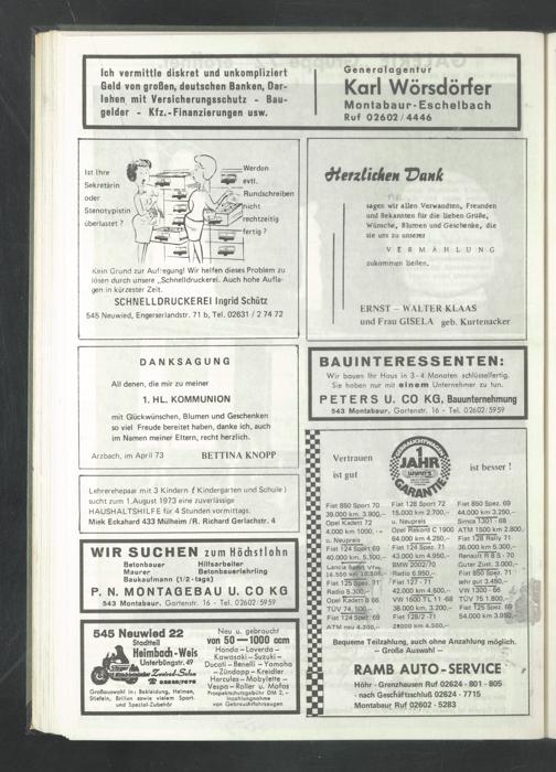 Höhr - Grenzhausen Ruf 02624 - 801 - 805 - nach Geschäftsschluß 02624 - 7715 Montabaur Ruf 02602 - 5283