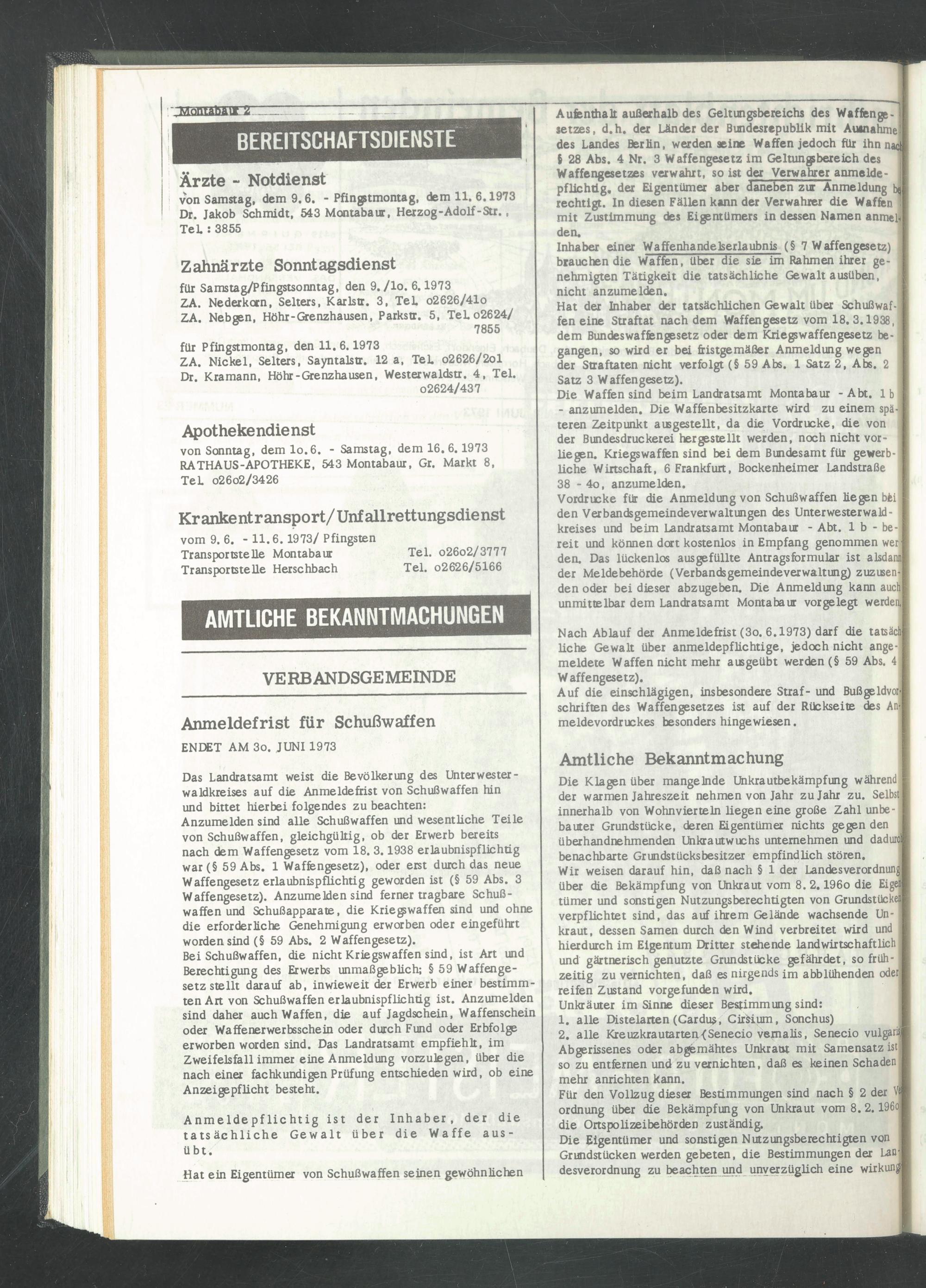 von Sonntag, dem lo.6. - Samstag, dem 16.6.1973 RATHAUS-APOTHEKE, 543 Montabaur, Gr. Markt 8, TeL o26o2/3426