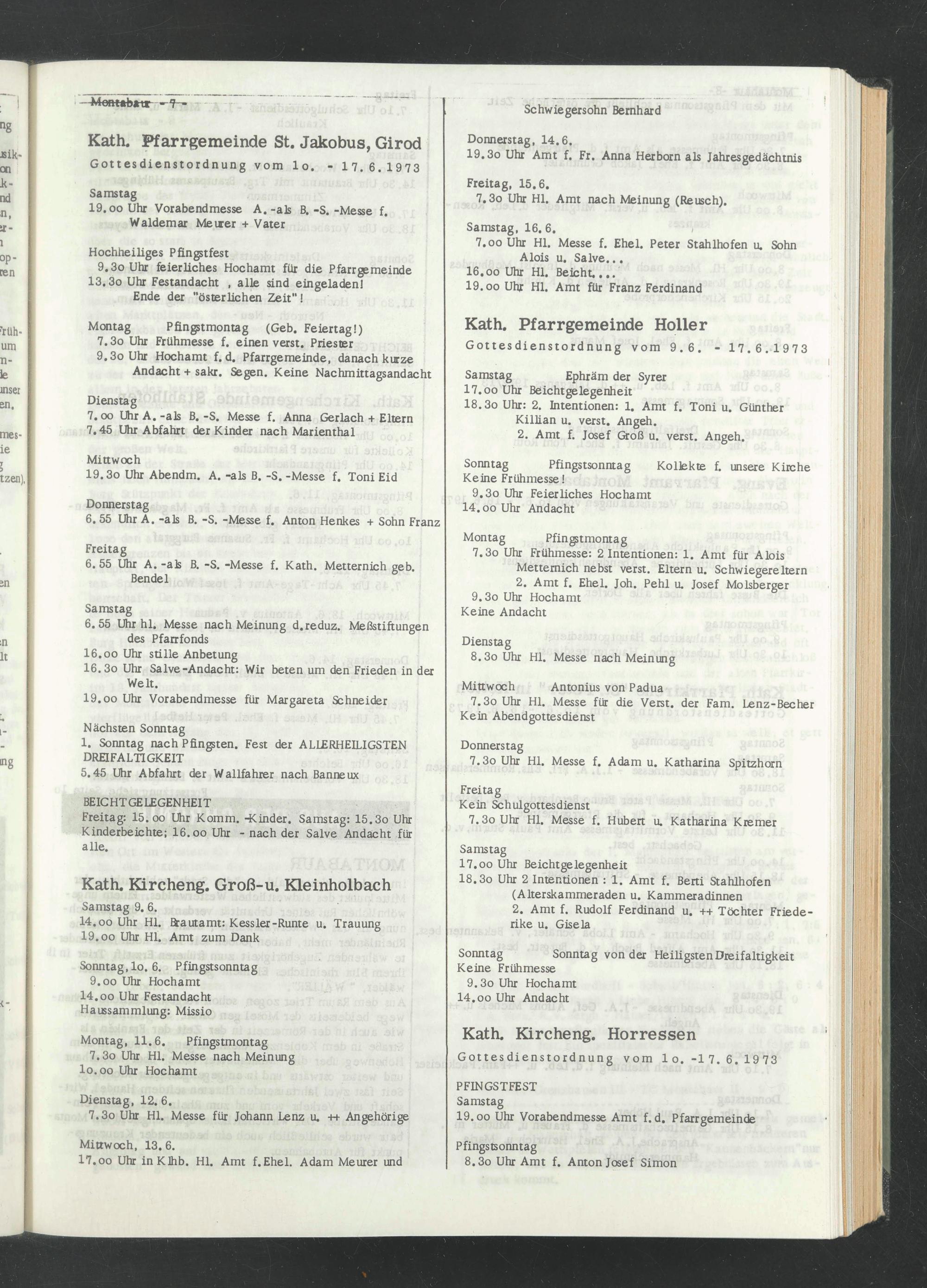 Gottesdienstordnung vom 9.6. - 17.6.1973
