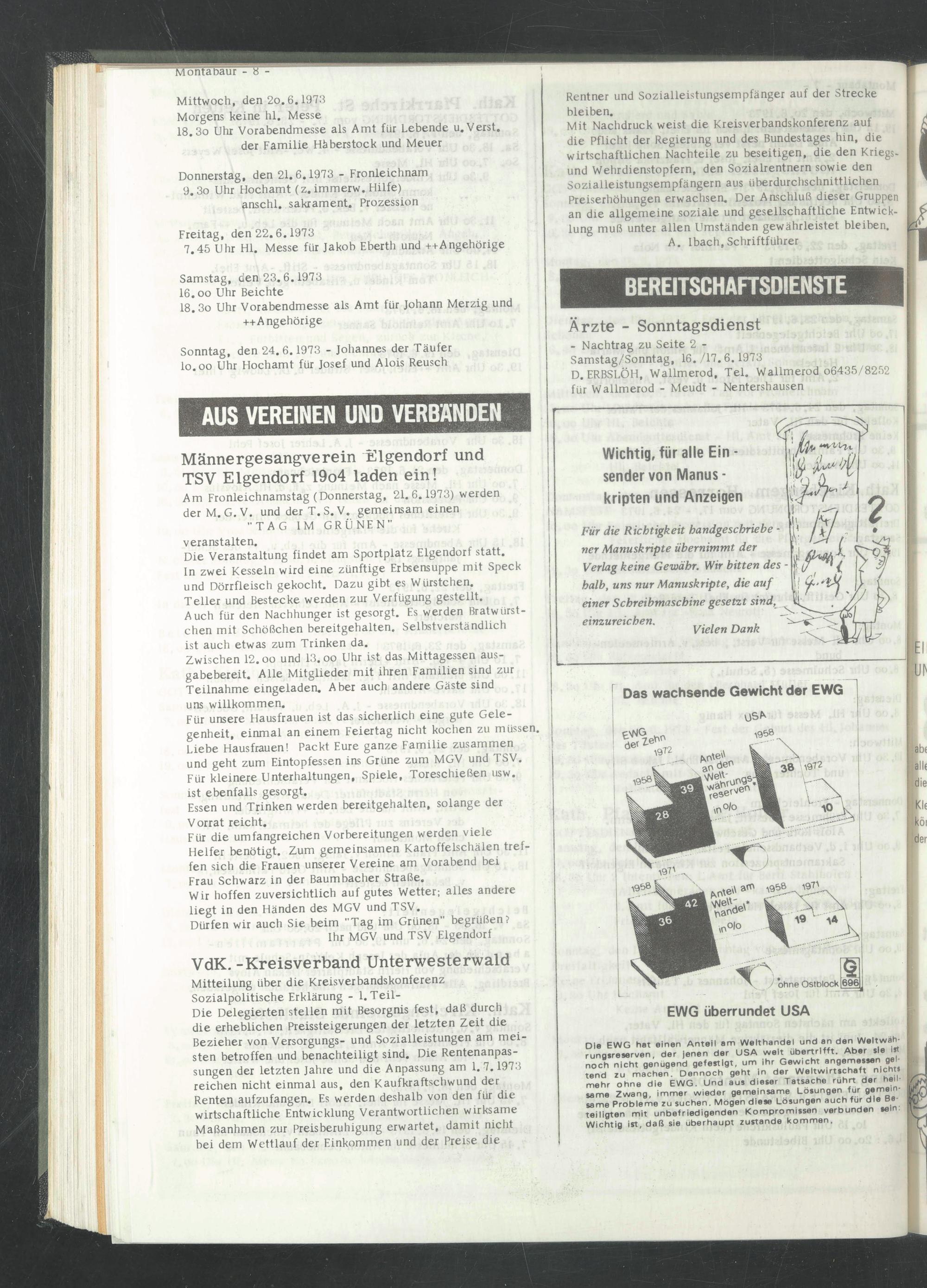 Donnerstag, den 21.6.1973 - Fronleichnam 9. 3o Uhr Hochamt (z. immerw. Hilfe)