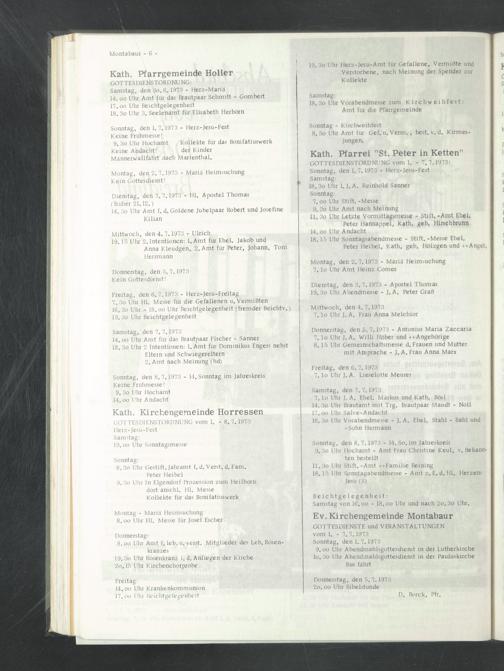 Sonntag, den 1. 7.1973 - Herz-Jesu-Fest Keine Frühmesse!
