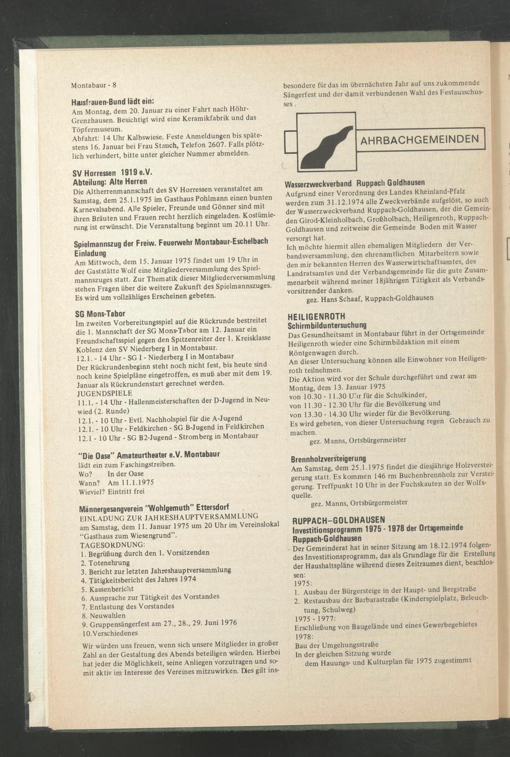 EINLADUNG ZUR JAHRESHAUPTVERSAMMLUNG am Samstag, dem 11. Januar 1975 um 20 Uhr im Vereinslokal “Gasthaus zum Wiesengrund”.