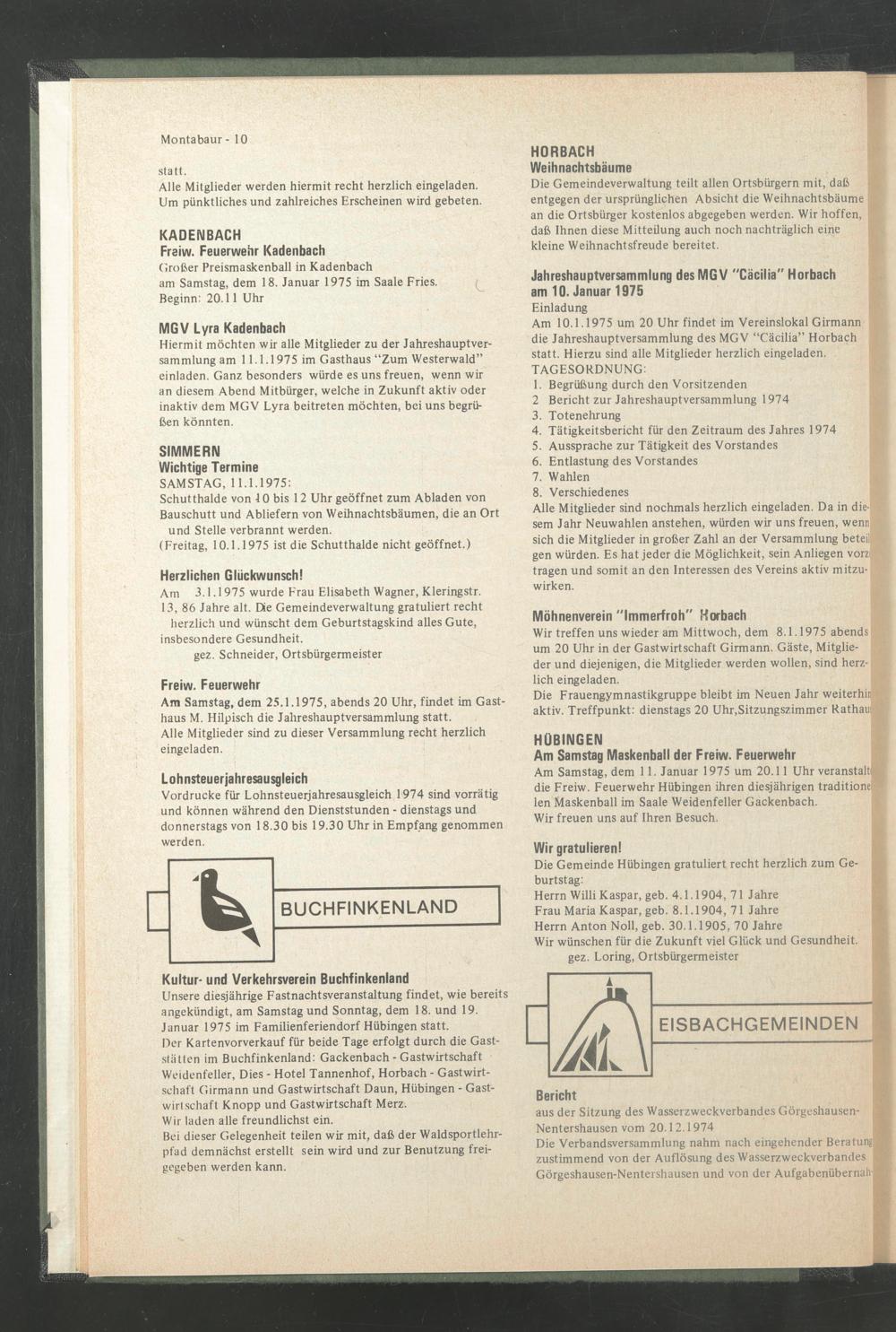 Am 10.1.1975 um 20 Uhr findet im Vereinslokal Girmann die Jahreshauptversammlung des MGV “Cäcilia” Horbach statt. Hierzu sind alle Mitglieder herzlich eingeladen. TAGESORDNUNG: