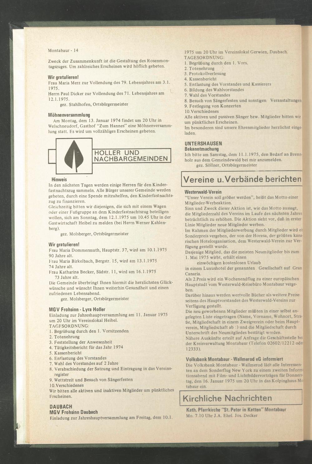 Frau Maria Birkelbach, Bergstr. 15, wird am 13.1.1975 74 Jahre alt.