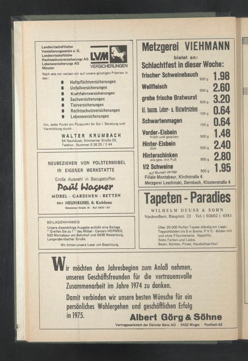ir möchten den Jahresbeginn zum Anlaß nehmen, unseren Geschäftsfreunden für die vertrauensvolle Zusammenarbeit im Jahre 1974 zu danken.