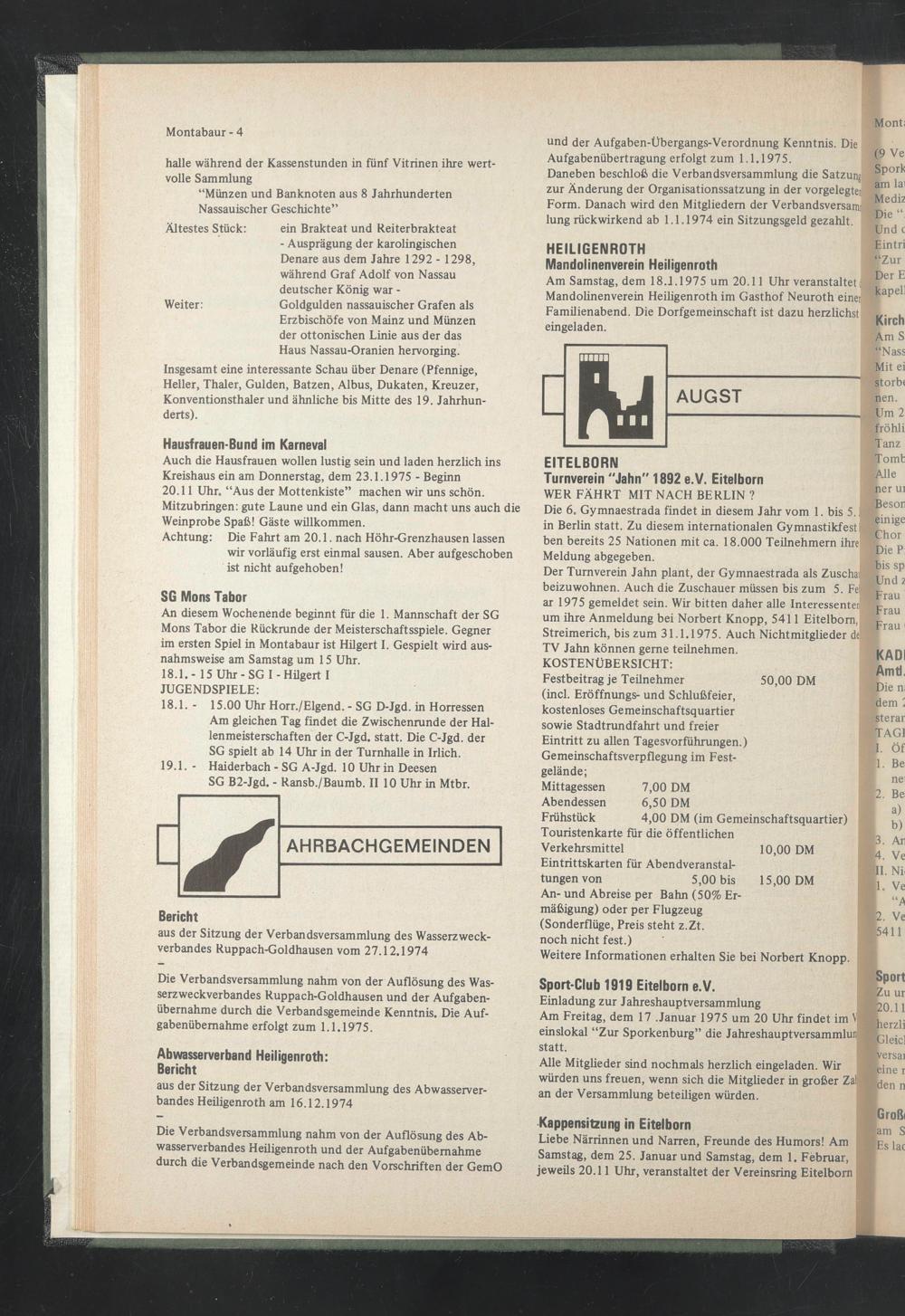 aus der Sitzung der Verbandsversammlung des Abwasserverbandes Heiligenroth am 16.12.1974