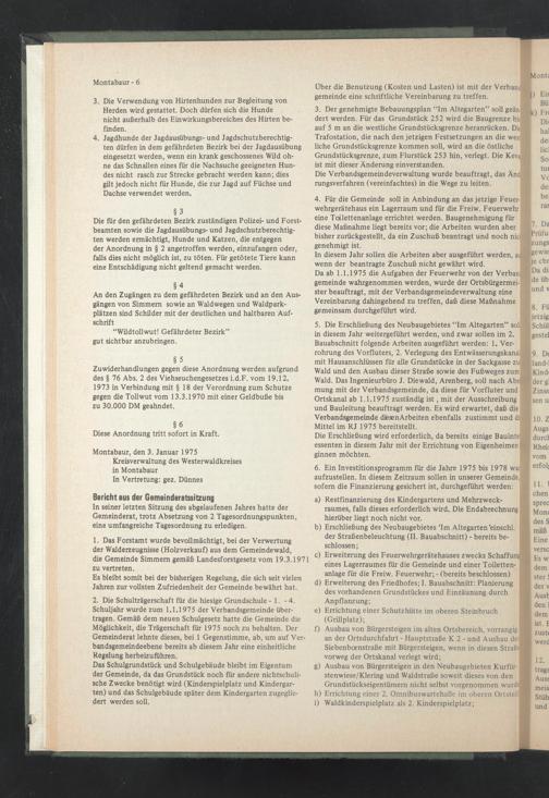 6. Ein Investitionsprogramm für die Jahre 1975 bis 1978 wail aufzustellen. In diesem Zeitraum sollen in unserer Gemeinde,! sofern die Finanzierung gesichert ist, durchgeführt werden: