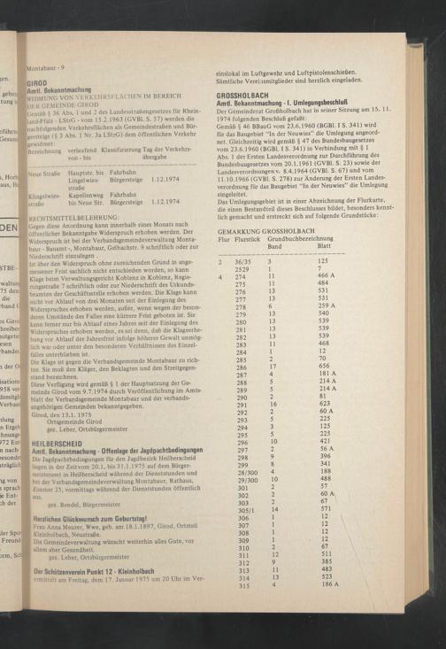 Diese Verfügung wird gemäß § 1 der Hauptsatzung der Gemeinde Girod vom 9.7.1974 durch Veröffentlichung im Amtsblatt der Verbandsgemeinde Montabaur und der verbandsangehörigen Gemeinden bekanntgegeben.