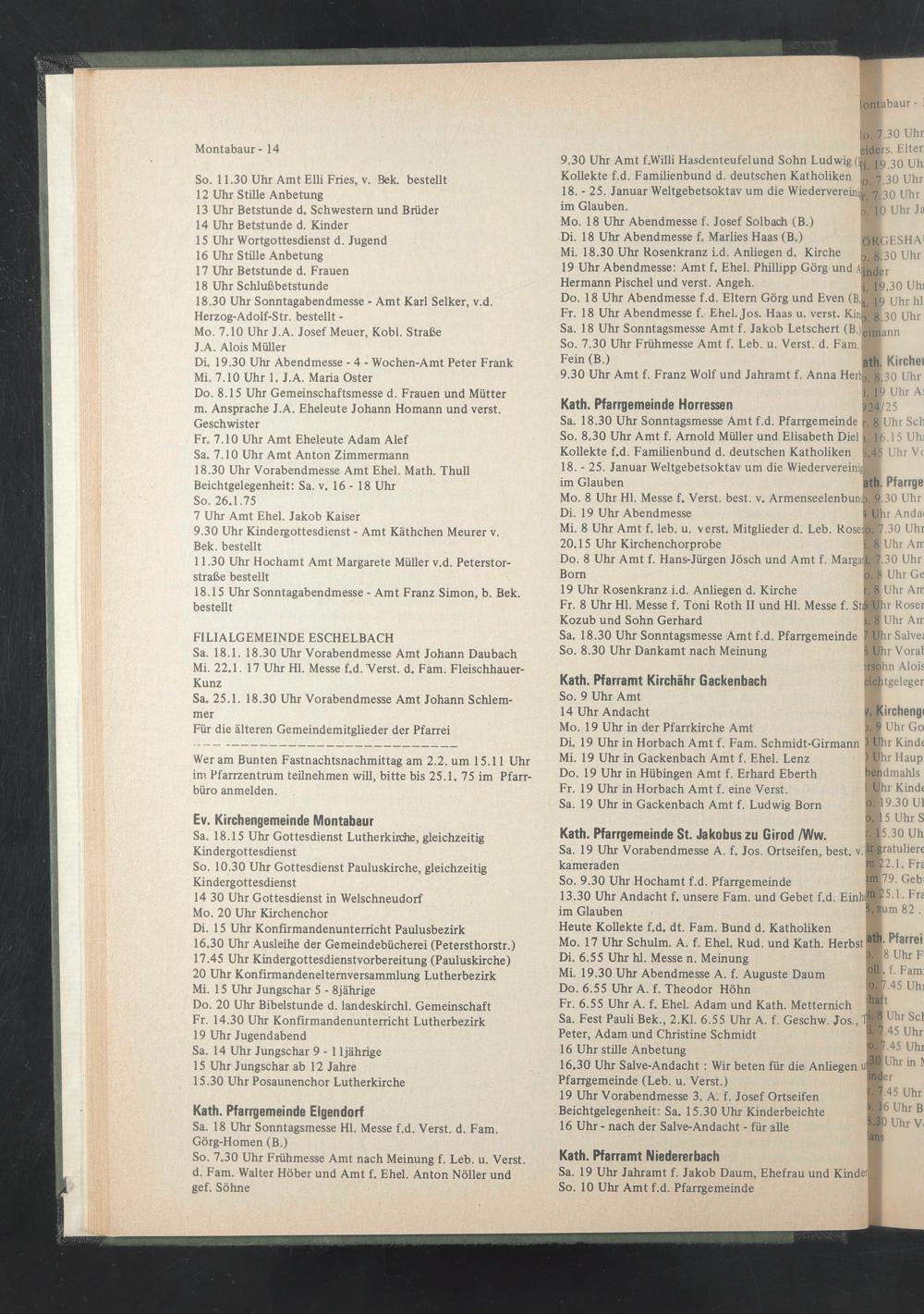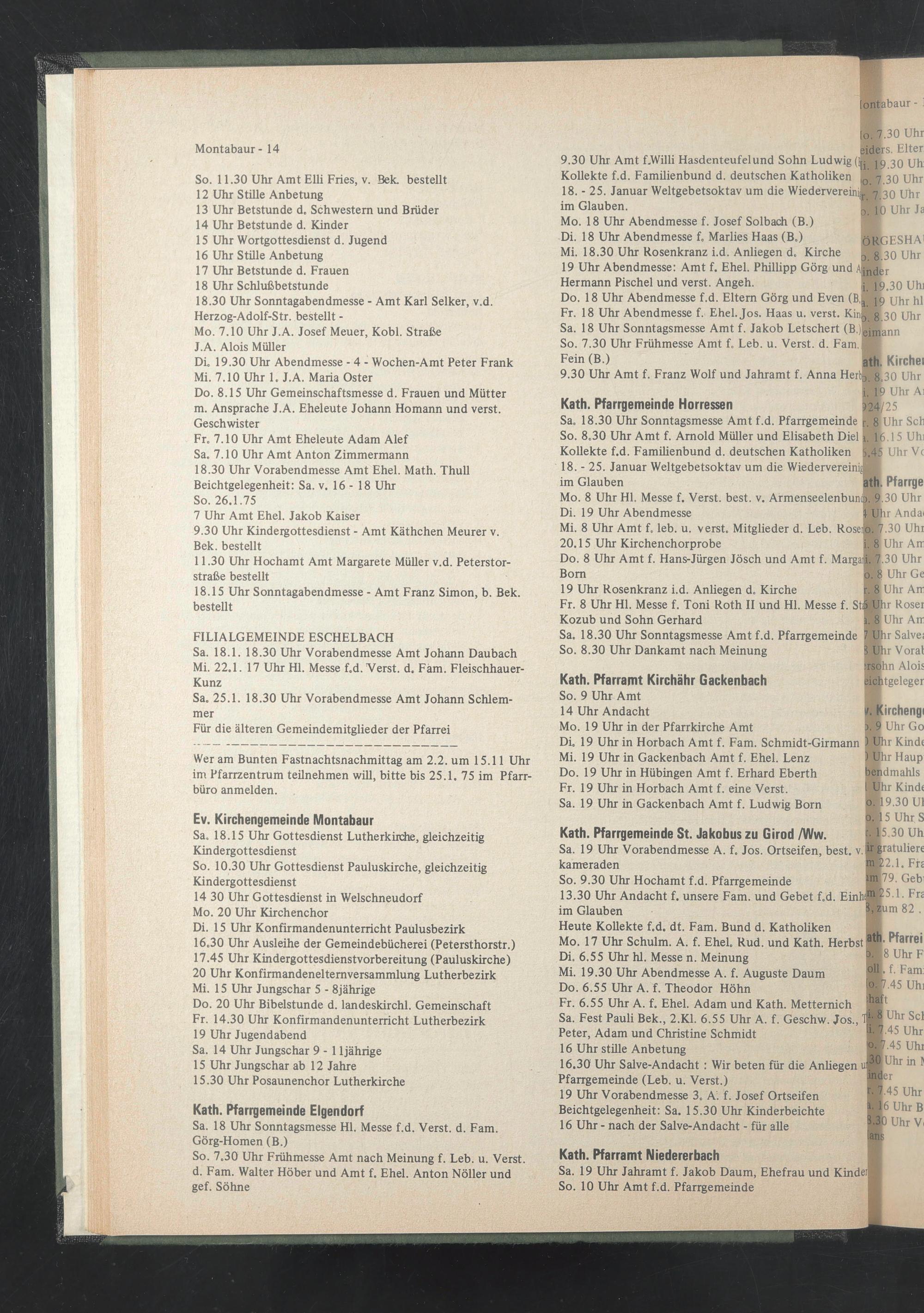 Di. 19 Uhr in Horbach Amt f. Fam. Schmidt-Girmann jMtJhr Kind« Mi. 19 Uhr in Gackenbach Amt f. Ehel. Lenz ) tjhr Haup