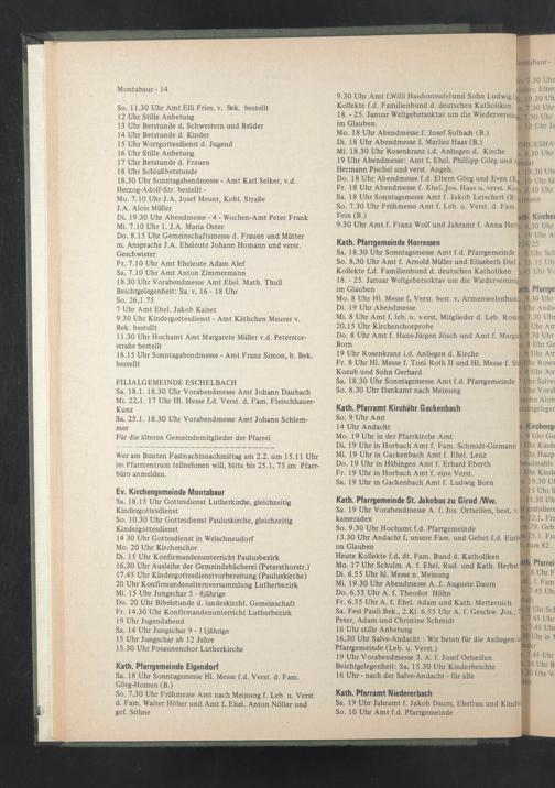 Do. 18 Uhr Abendmesse f.d. Eltern Görg und Even (B lft 19 uhr hl Fr. 18 Uhr Abendmesse f. Ehel. Jos. Haas u. verst. Kin 0 g 30 Uhr Sa. 18 Uhr Sonntagsmesse Amt f. Jakob Letschert (Bemann So. 7.30 Uhr Frühmesse Amt f. Leb. u. Verst. d. Fam.