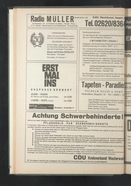 WILHELM DEUSS & SOHN Eltrfamil Niederelbert, Hauptstr. 23 Tel. ( 02602 ) 43( Q ^* 00 ' H