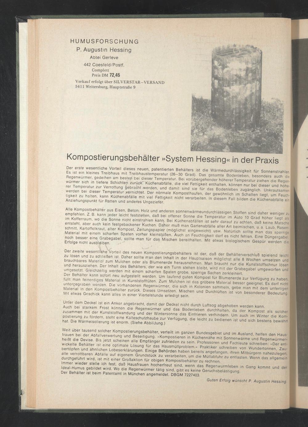 HUMUSFORSCHUNG P. Augustin Hessing
