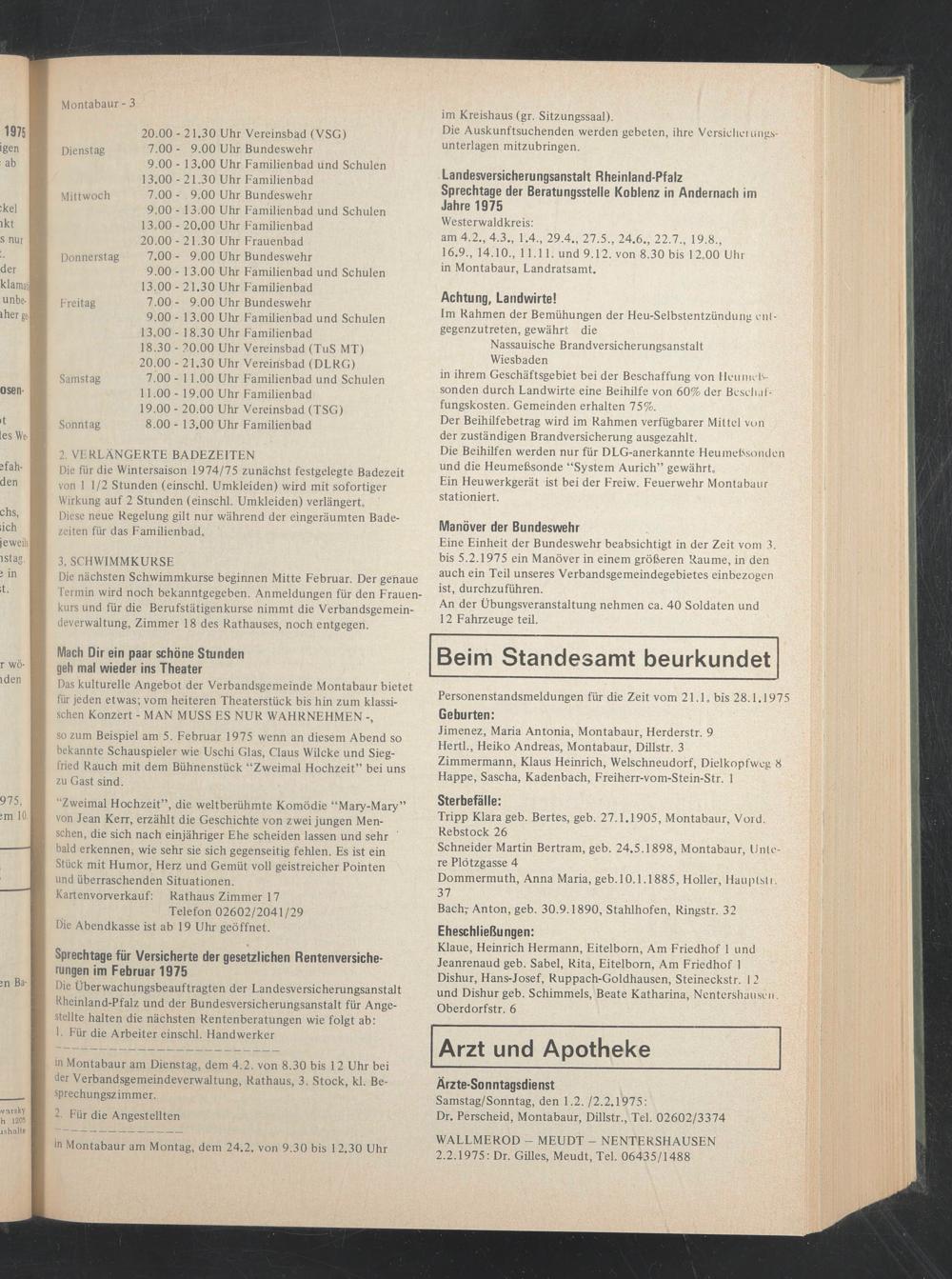 Personenstandsmeldungen für die Zeit vom 21.1. bis 28.1.1975