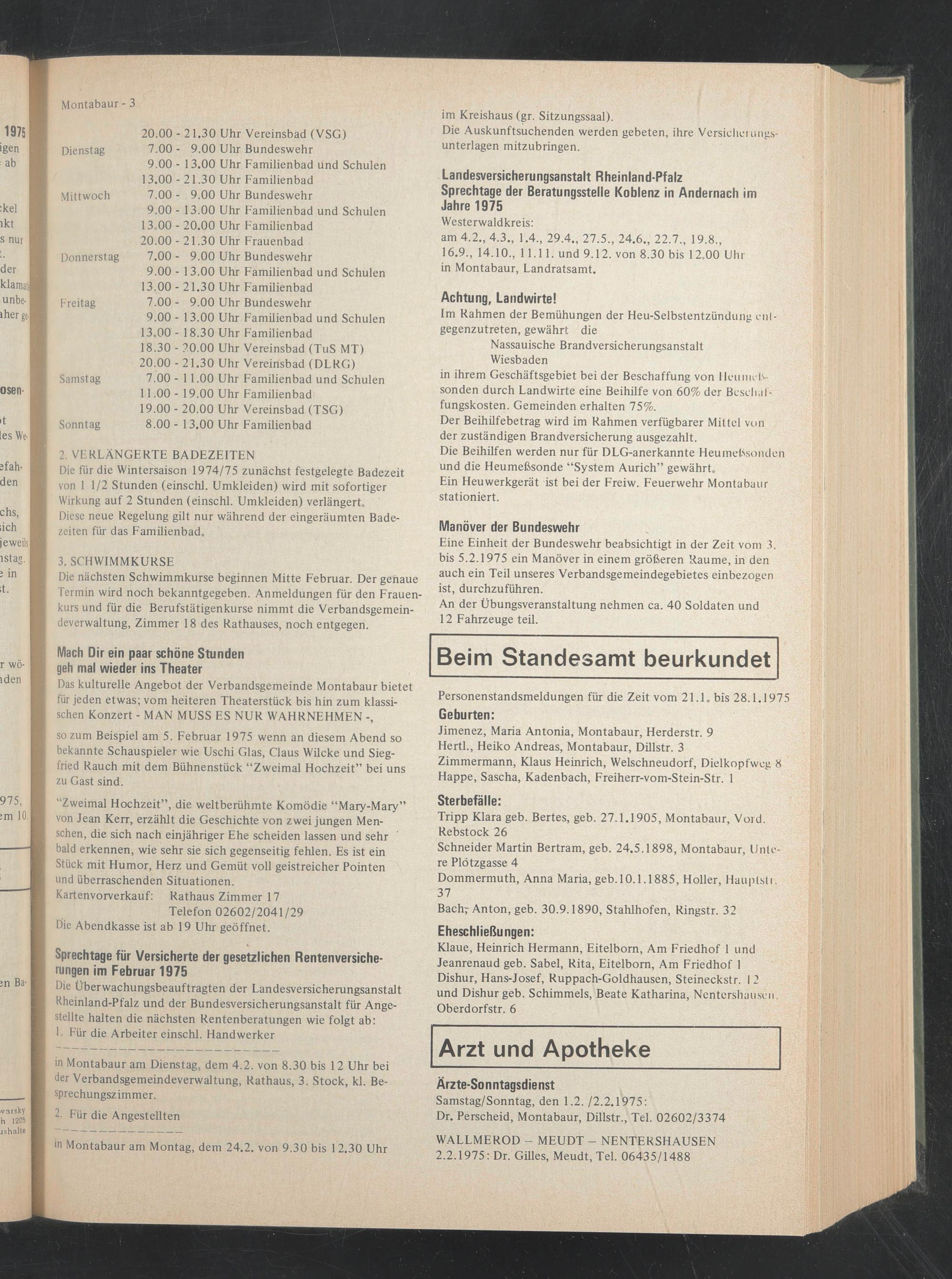 Eine Einheit der Bundeswehr beabsichtigt in der Zeit vom 3. bis 5.2.1975 ein Manöver in einem größeren Raume, in den auch ein Teil unseres Verbandsgemeindegebietes einbezogen ist, durchzuführen.