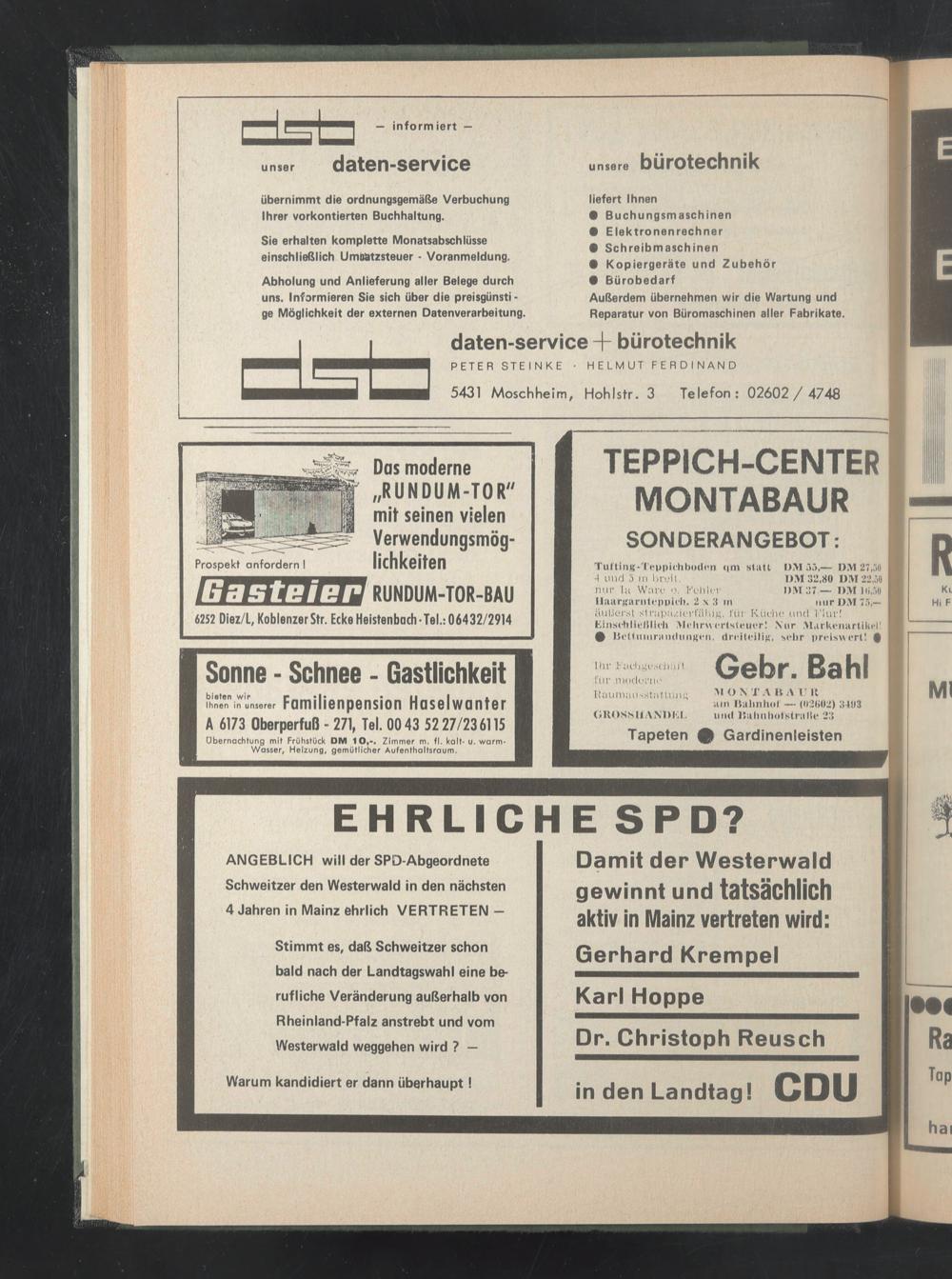ANGEBLICH will der SPD-Abgeordnete Schweitzer den Westerwald in den nächsten