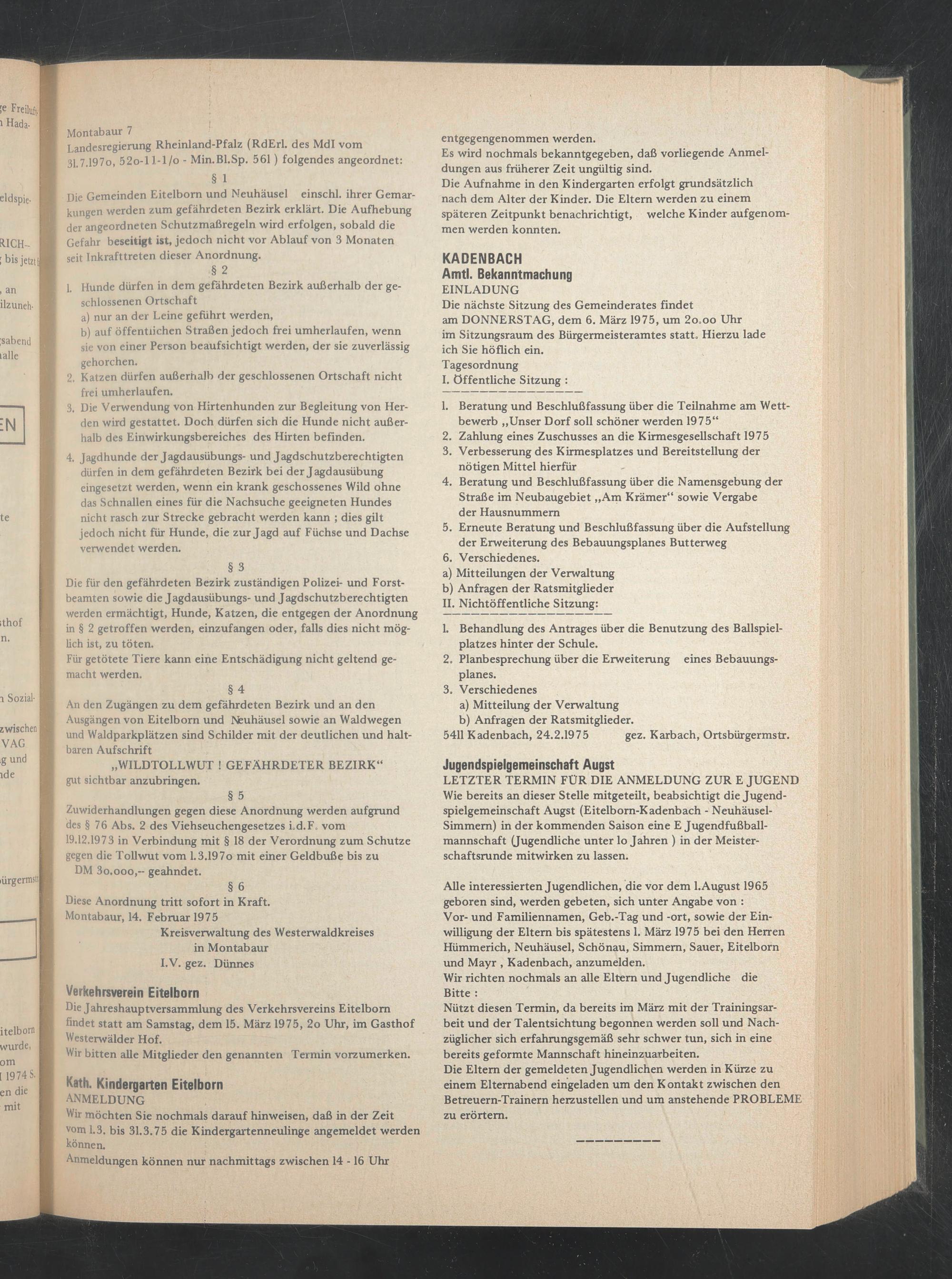 5411 Kadenbach, 24.2.1975 gez. Karbach, Ortsbürgermstr.