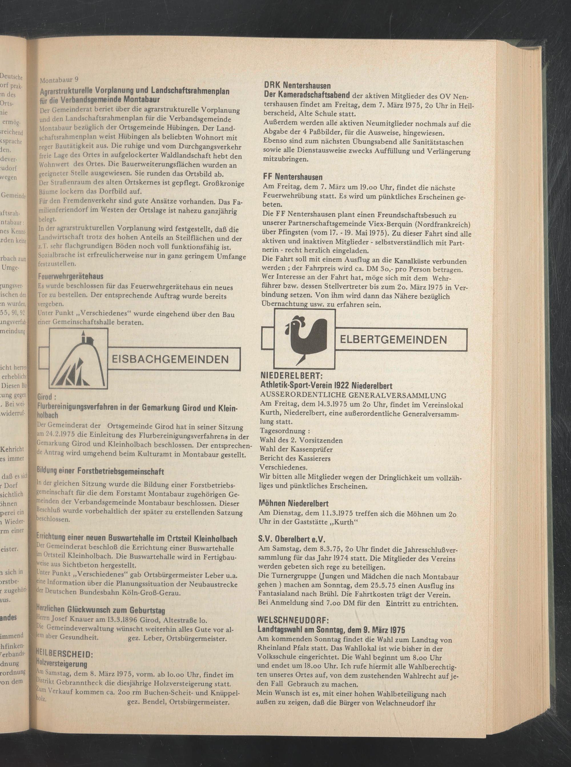 Am Freitag, dem 14.3.1975 um 2o Uhr, findet im Vereinslokal Kurth, Niederelbert, eine außerordentliche Generalversammlung statt.
