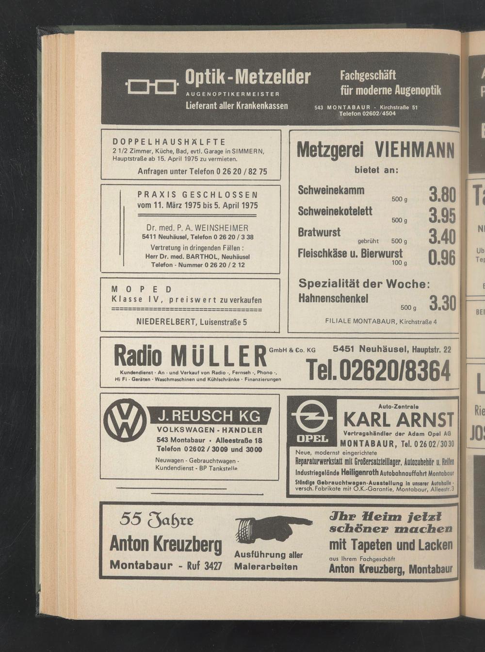 2 1/2 Zimmer, Küche, Bad, evtl. Garage in SIMMERN, Hauptstraße ab 15. April 1975 zu vermieten.