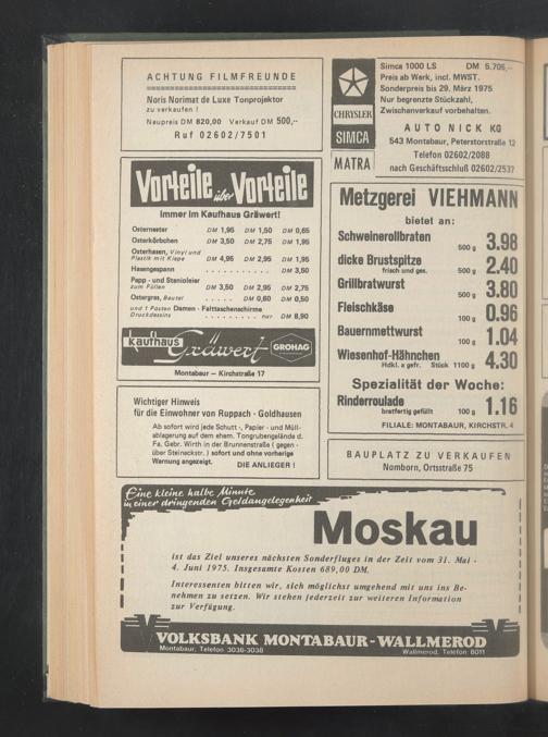 Simca 1000 LS DM 5.705,- Preis ab Werk, incl. MWST. Sonderpreis bis 29. März 1975 Nur begrenzte Stückzahl, Zwischenverkauf Vorbehalten.