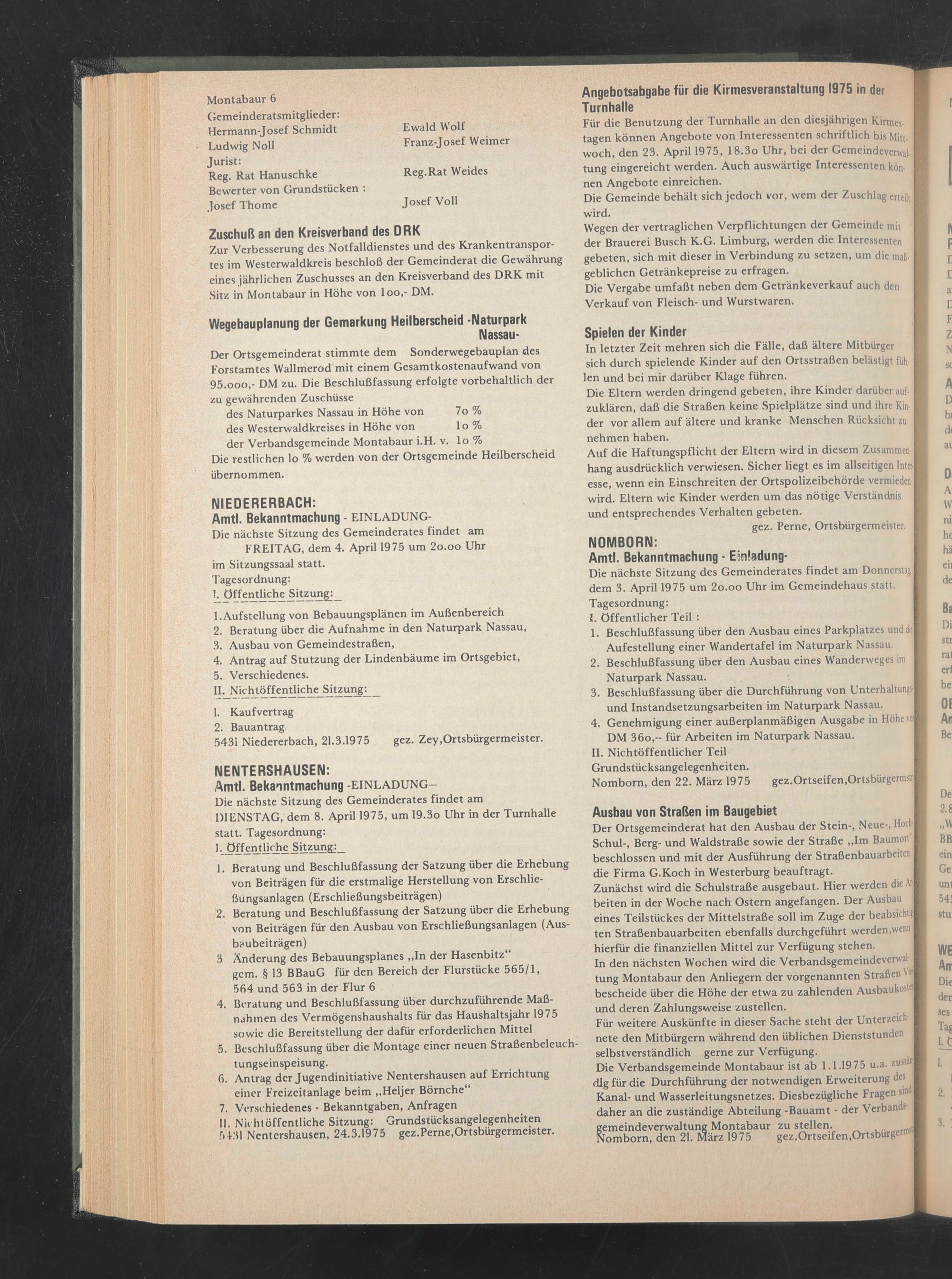 5431 Nentershausen, 24.3.1975 gez.Perne,Ortsbürgermeister.