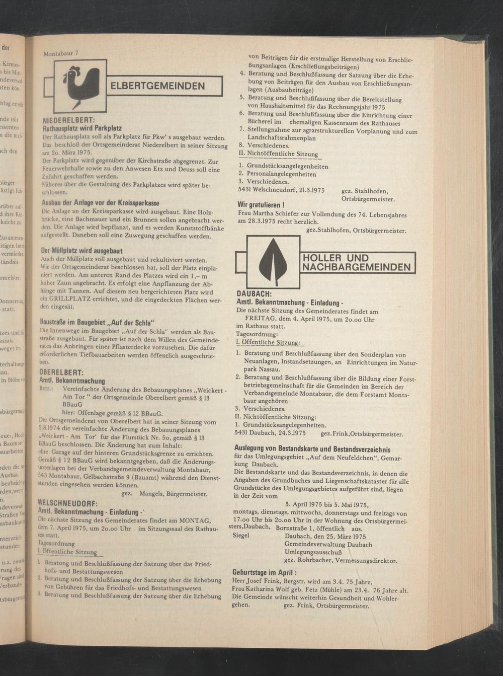 5431 Daubach, 24.3.1975 gez.Frink,Ortsbürgermeister.