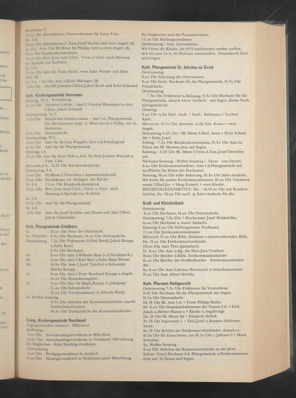 Mittwoch 17.oo Uhr Klhb. Dankamt z.immerwährenden Hilfe. Do. 15.oo Uhr Erstkommunionkinder 19.oo Uhr Amt Thea Quirmbach.