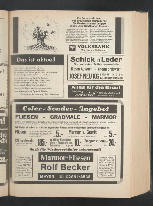 Verkauf vorgenannter Ware ab sofort in unserem Hause MAYEN, Kottenheimer Weg nur gegen Barzahlung, solange Vorrat reicht.