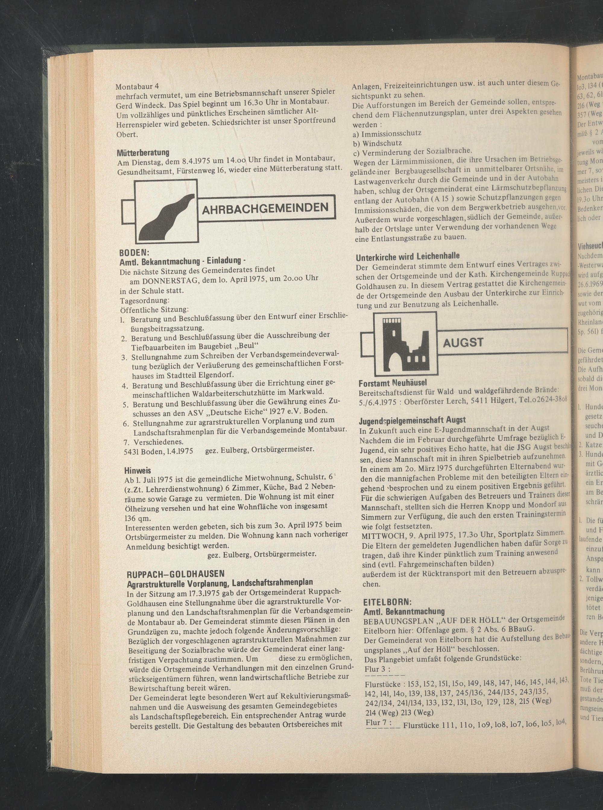 5431 Boden, 1.4.1975 gez. Eulberg, Ortsbürgermeister.