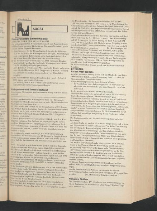 Am Montag, dem 4.8.1975 bleibt der Kindergarten wegen der Kirmes in Simmern noch geschlossen.