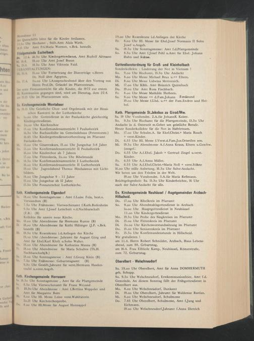 12.4. 18.3o Uhr Kindergottesdknst, Amt Rudolf Altmann Mi. 16-4- 19-o° Uhr Amt Josef Braun