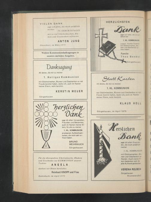 Weitere Kommuniondanksagungen in unseren nächsten Ausgaben.