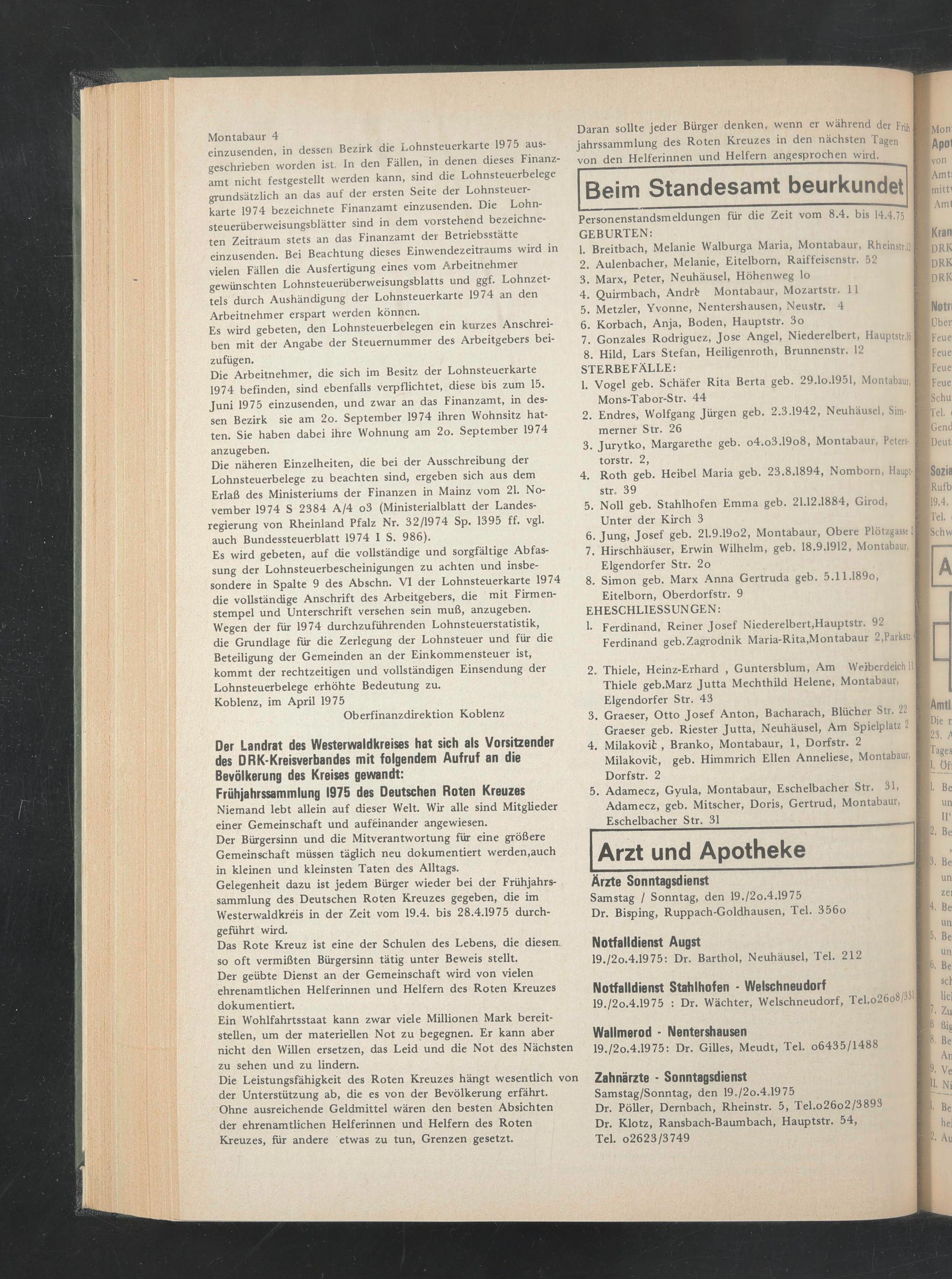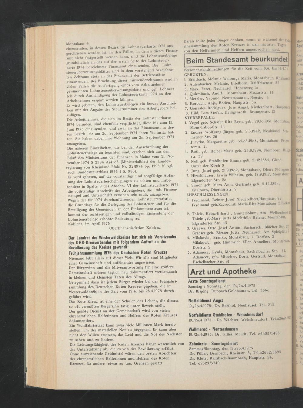 19./2o.4.1975: Dr. Gilles, Meudt, Tel. o6435/1488