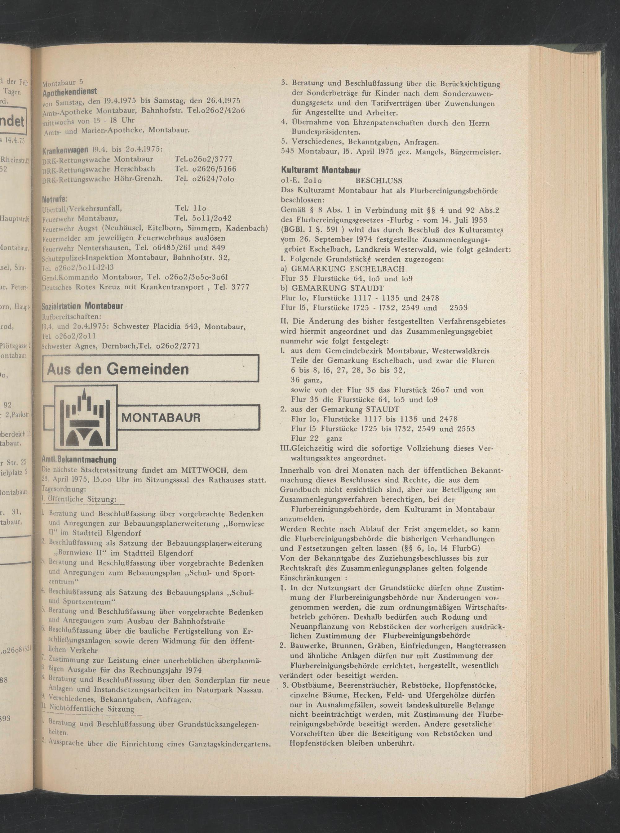 543 Montabaur, 15. April 1975 gez. Mangels, Bürgermeister.