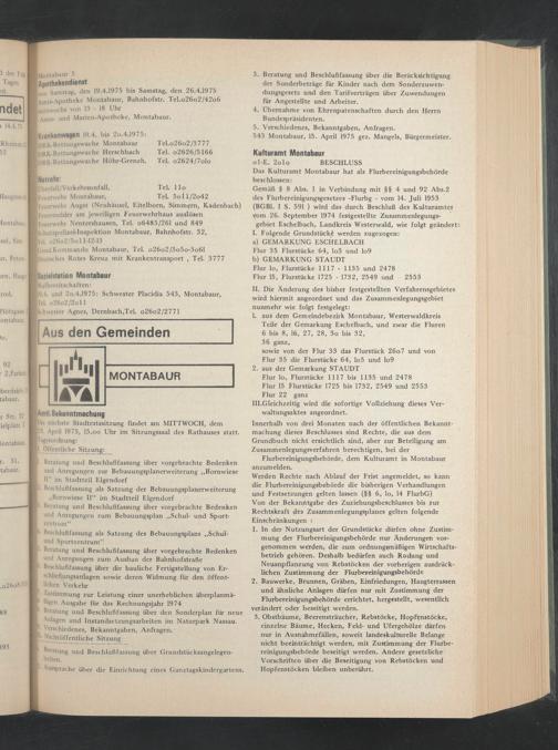 [von Samstag, den 19.4.1975 bis Samstag, den 26.4.1975 lAmts-Apotheke Montabaur, Bahnhofstr. Tel.o26o2/42o6 [mittwochs von 13 - 18 Uhr [ Amts- und Marien-Apotheke, Montabaur.