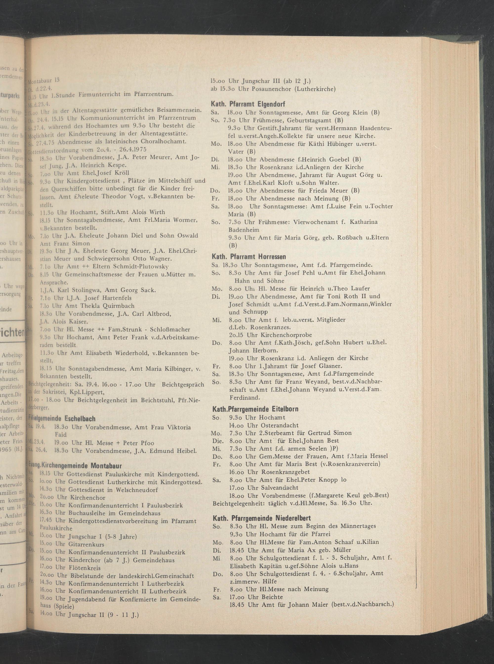 27.4.75 Abendmesse als lateinisches Choralhochamt, ttesdienstordnung vom 2o.4. - 26.4.1975