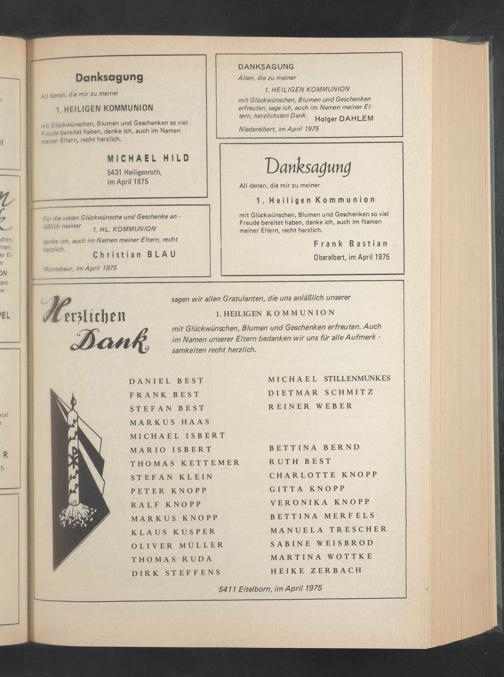 Für die vielen Glückwünsche und Geschenke an - läßlich meiner ; HL KO MMUNION
