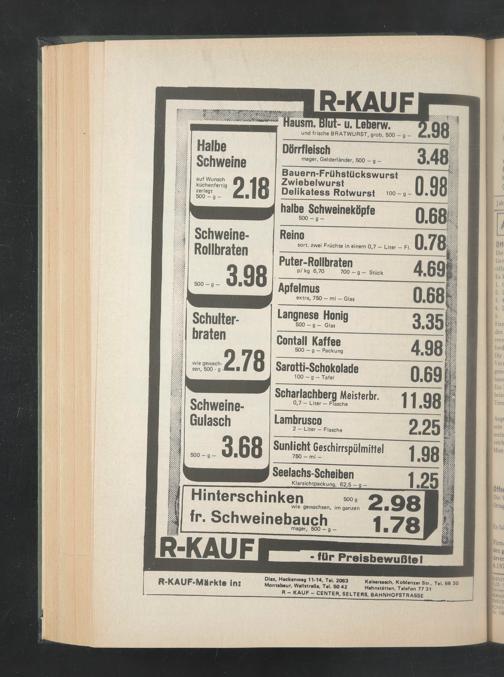 Diez, Heckenweg 11-14, Tel. 2063 Kaisersesch, Koblenzer Str., Tel. 66 30 Montabaur, Wallstraße, Tel. 60 42 Heimstätten, Telefon 77 31 R - KAUF - CENTER, SELTERS, BAHNHOFSTRASSE