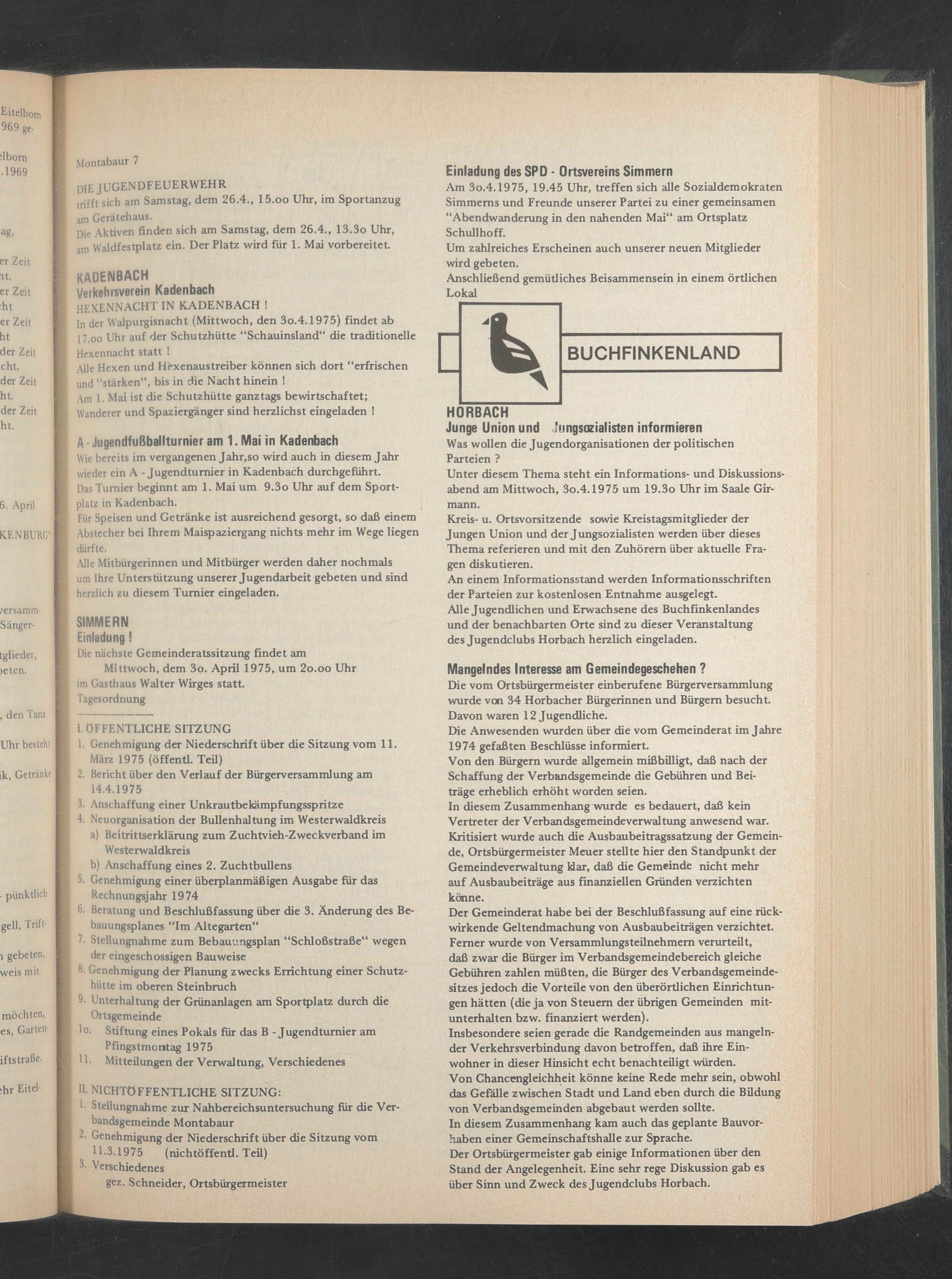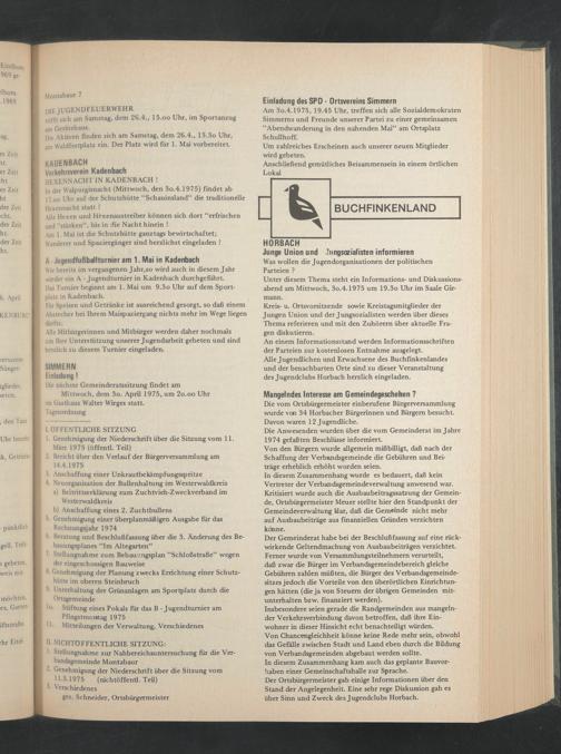 Am 3o.4.1975, 19.45 Uhr, treffen sich alle Sozialdemokraten Simmems und Freunde unserer Partei zu einer gemeinsamen “Abendwanderung in den nahenden Mai“ am Ortsplatz Schullhoff.