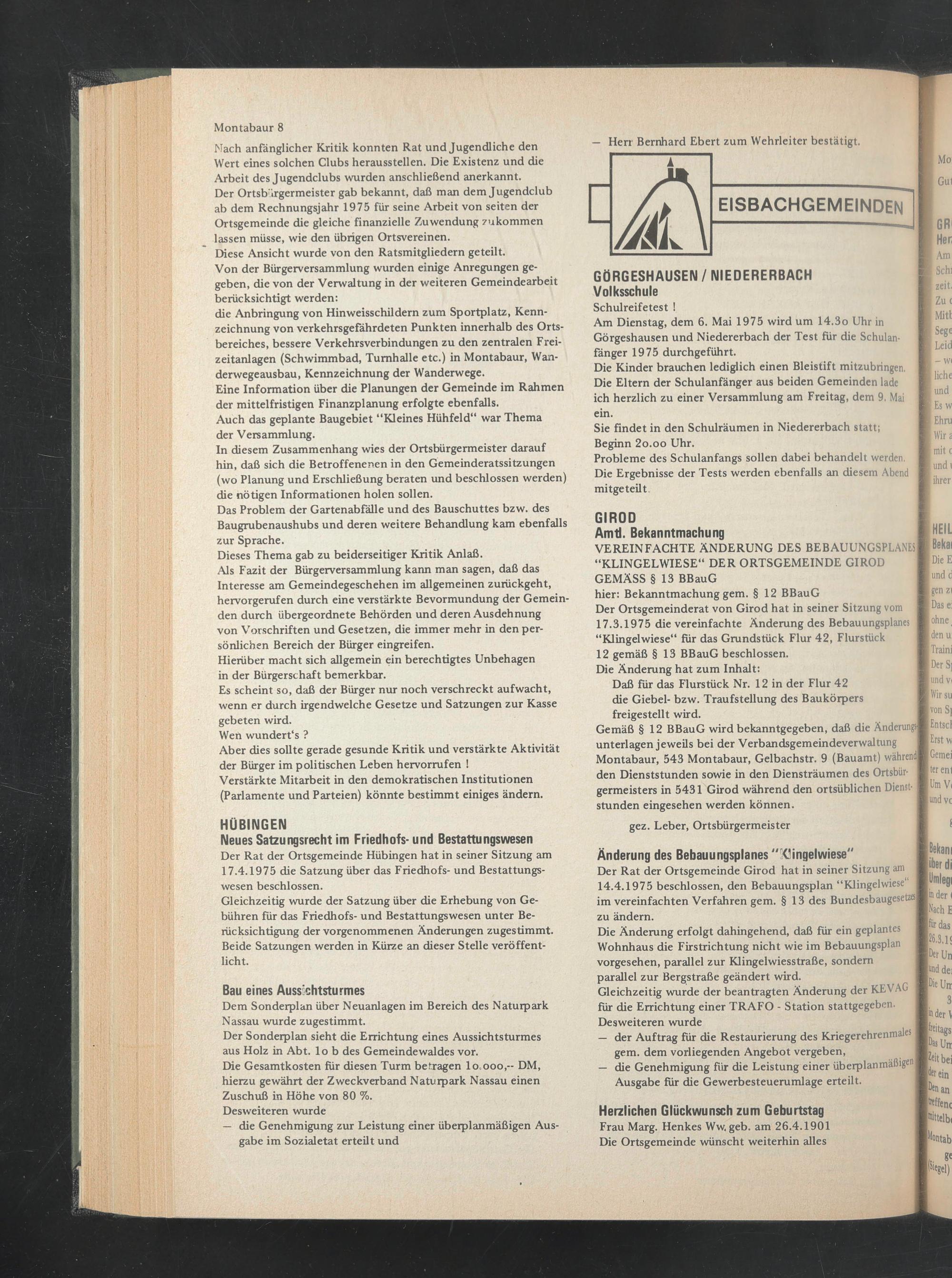 14.4.1975 beschlossen, den Bebauungsplan “Klingelwiese im vereinfachten Verfahren gern. § 13 des Bundesbaugesetze zu ändern.