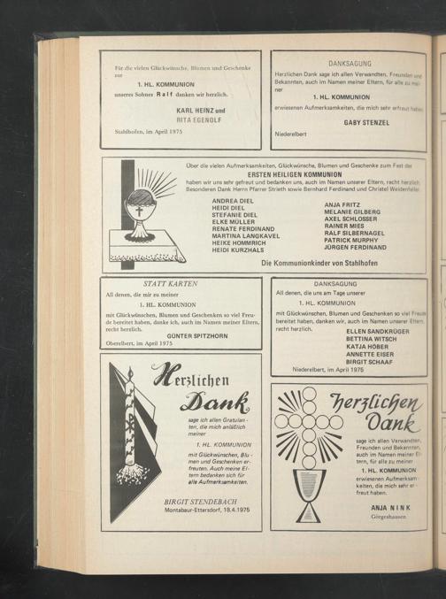 haben wir uns sehr gefreut und bedanken uns, auch im Namen unserer Eltern, recht herzlich. Besonderen Dank Herrn Pfarrer Strieth sowie Bernhard Ferdinand und Christel Weidenfeller.