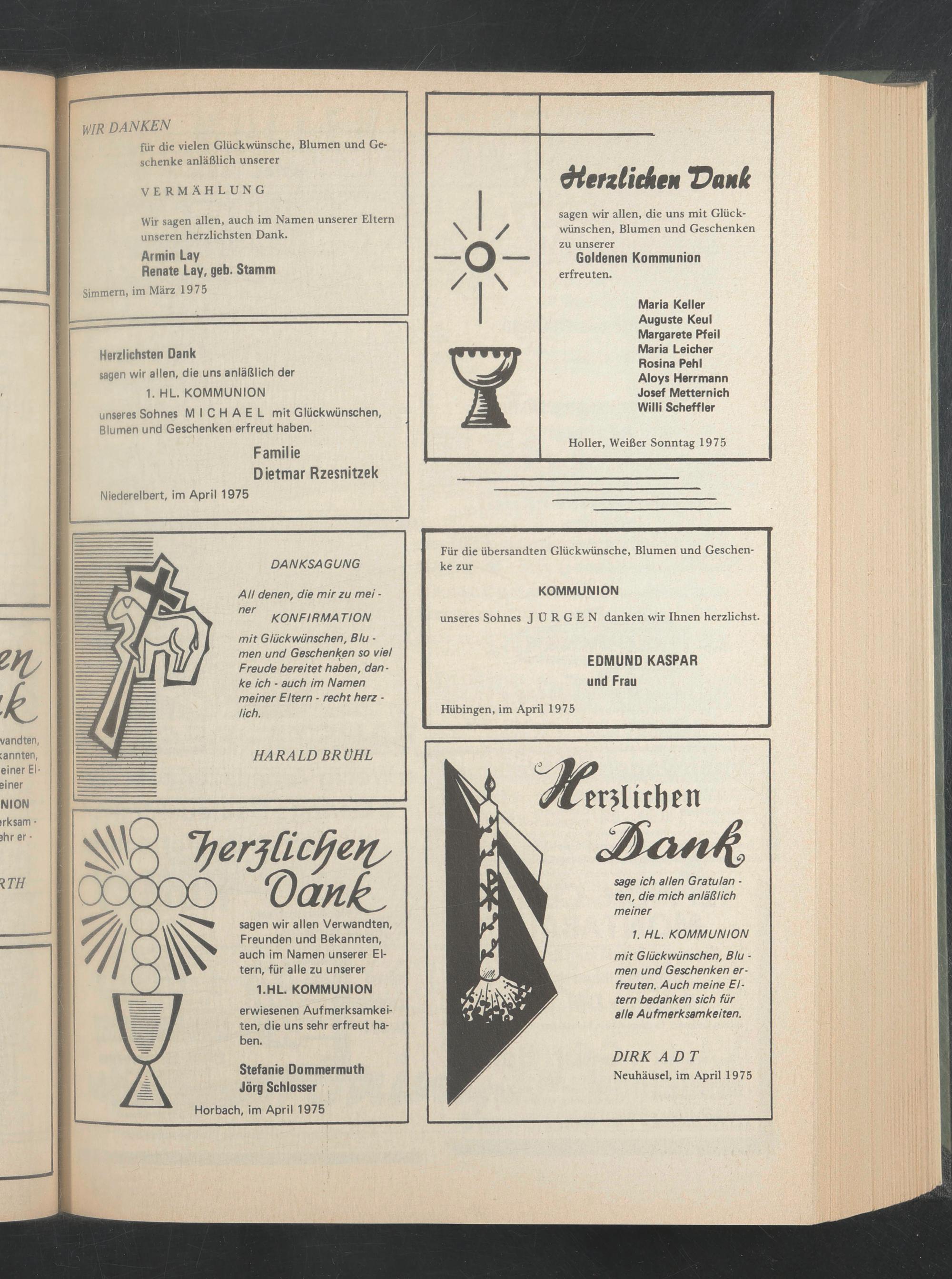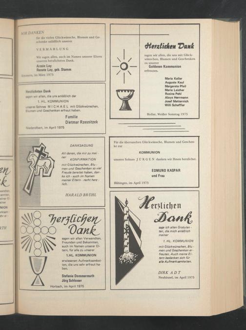 Wir sagen allen, auch im Namen unserer Eltern unseren herzlichsten Dank.