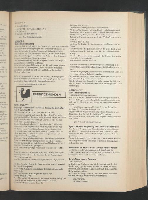 Der Rat der Ortsgemeinde Oberelbert hat in seiner Sitzung am 25.4.1975 dem Bericht über die agrarstrukturelle Vorplanung und den Landschaftsrahmenplan grundsätzlich zugestimmt.