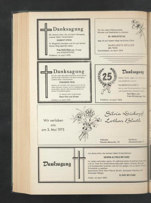 Frau Sofie Stein geb. Knopp und ANGEHÖRIGE Eitelborn, im April 1975