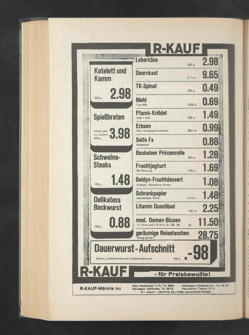 Diez, Haekanwag 11*14, Tal. 2063 Kaliariaich, Koblanzar Str., Tal. 66 30 Montabaur, Wallitraßa, Tal. 60 42 Hahnttättan, Talafon 77 31 R - KAUF - CENTER, SELTERS, BAHNHOFSTRASSE