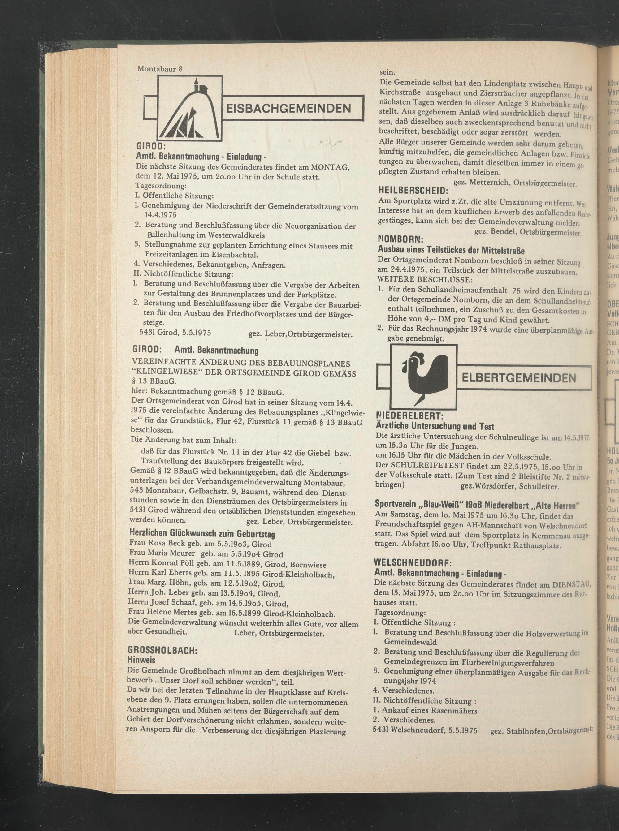 5431 Girod, 5.5.1975 gez. Leber,Ortsbürgermeister.